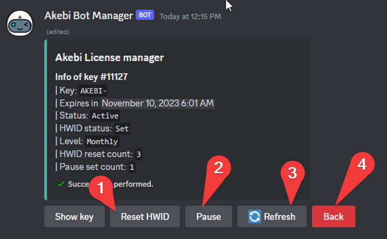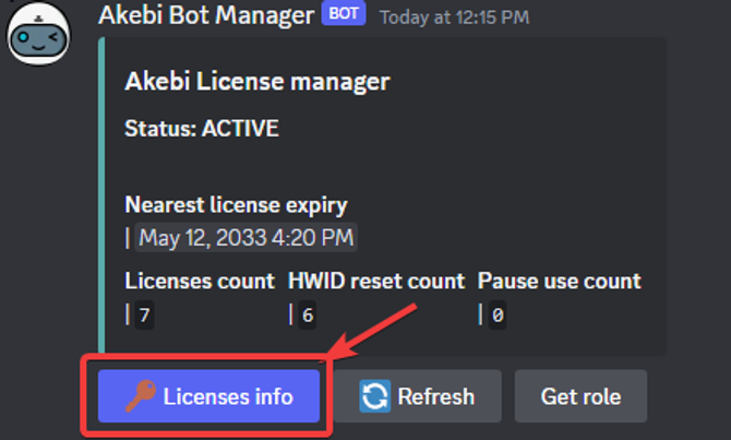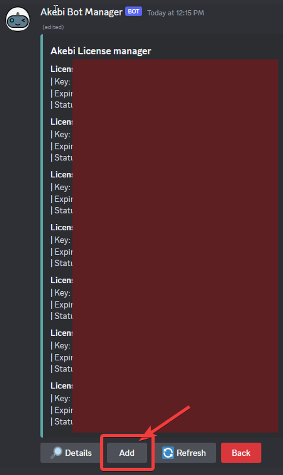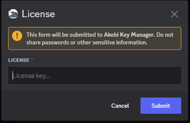 Discord, 写入或添加到机器人Akebi Key Manager#1178wordstart单击